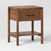 The Warwick Wood & Rattan Side Table from Threshold™ is a perfect blend of style and functionality. Featuring a durable wood frame, this wood-finish accent table strikes a clean-lined silhouette and is easy to complement a wide range of design aesthetics and color palettes. The rectangular tabletop and lower shelf are perfect for decor, framed photographs and other items, while the rattan mesh-panel drawer enhances the visual appeal and provides you space to stash TV remotes, coasters and other daily essentials. Keep it beside the sofa or couch as a convenient space for lighting, placing beverages and more. Overall width:18”