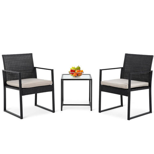3 Piece Rattan Set Wicker Bistro Sets Patio Furniture Set With Tempered Glass Coffee Table And Chairs Conversation Outdoor Furniture Sets With Cushions For Patio Lawn Garden Balcony Poolside, Black (LOCAL PICKUP ONLY)