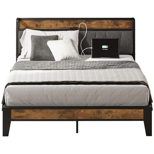 LIKIMIO Full Bed Frame, Storage Headboard With Charging Station, Solid And Stable, Noise Free, No Box Spring Needed, Easy Assembly (LOCAL PICKUP ONLY)