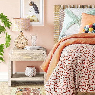 View full detailsZebrina Wood Nightstand with Drawer Natural - Threshold: Bohemian Style, Arched Design, Square Shape, Stained Finish (LOCAL PICKUP ONLY)