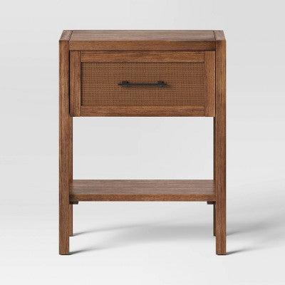 ThresholdThe Warwick Wood & Rattan Side Table from Threshold™ is a perfect blend of style and functionality. Featuring a durable wood frame, this wood-f...
