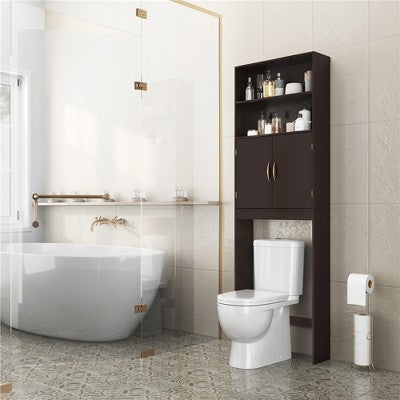 Yaheetech Free Standing Over the Toilet Storage with Doors and Open Shelves, Espresso (LOCAL PICKUP ONLY)