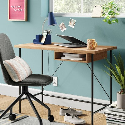 Room EssentialsPut together a stylish home office with this Wood and Metal Writing Desk with Storage from Room Essentials™. Standing on metal frame for stability,...