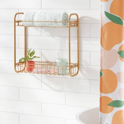 View full detailsOn The Wall 2 Tier Shelving Rack Metallic Gold - Room Essentials: Powder-Coated Steel, Universal Storage Cabinet
