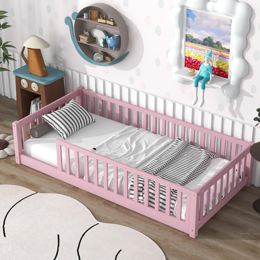 View full detailsPVWIIK Twin Size Montessori Floor Bed With Wood Slats Support For Girls & Boys,Wood Montessori Bed Frame With Safety Guardrails & Close To The Floor For Kids,Pink (LOCAL PICKUP ONLY)