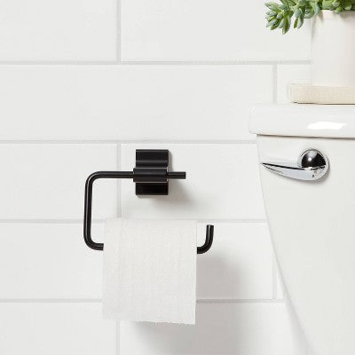 View full detailsModern Toilet Paper Holder Black - Threshold: Zinc & Stainless Steel, Wall Mounted, 6.44" Length