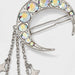 Add a touch of elegance and fun to your Halloween look with the Halloween Moon Dangle Hair Clip. This accessory features a delicate crescent moon charm, adorned with sparkling rhinestones perfect for adding a classic touch to your hairstyle. Whether for a Halloween party or the eerie season this hair clip is the perfect finishing touch to any outfit.
