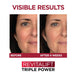 Revitalift Triple Power Day Cream Face Moisturizer is an anti-aging and anti-wrinkle face cream moisturizer, formulated with 3 of the top derm-recommended ingredients: Pro-Retinol, Hyaluronic Acid and Vitamin C to reduce wrinkles, firm and brighten in 1 week. After use skin feels smoother, softer, refreshed. Dermatologist tested, suitable for sensitive skin. Paraben free, mineral oil free, dye free, allergy tested. Layers well under makeup. Now, also available in Fragrance Free and SPF 30.