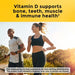 Nature Made Vitamin D3 + K2 Gummies, with 5000 IU (125 mcg) Vit D per serving, are an easy and enjoyable way to add a K2 D3 vitamin supplement to your daily routine. Vitamin D3 supports bone, teeth, muscle and immune health. Vitamin K2 and D3 work together to make activated proteins that support healthy vascular function. Adding K2 to Vitamin D3 helps direct calcium to bones, and Vitamin D3 with K2 works better for bone health when taken together than Vit D3 alone. Made in the USA with quality global ingredients, these Vitamin D3 K2 gummies are gluten free dietary supplements with no synthetic dyes-colors derived from natural sources, no artificial flavors, no artificial sweeteners, and no high fructose corn syrup. Designed for those with higher Vitamin D needs and/or deficiency as determined by a healthcare professional (1). These delicious gummies come in a peach flavor with other natural flavors. Adults chew two D3 K2 gummies daily. Nature Made Vitamin D3 and K2 supplements are quality you can trust. (1)Approximately 29% of U.S. adults are Vitamin D deficient (<50 nmol/L). *Based on a survey of pharmacists who recommend branded vitamins and supplements.CAUTION: Use only as directed by your healthcare professional. Do not exceed two gummies daily or take with other supplements containing vitamin D. Consult with your healthcare professional before using if you are pregnant, nursing, taking any medications, or have any chronic medical conditions.These statements have not been evaluated by the Food and Drug Administration. This product is not intended to diagnose, treat, cure, or prevent any disease.