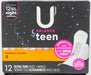 U by Kotex Teen Ultra Thin Feminine Pads with Wings Overnight Unscented 12 Count
