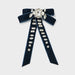Velvet Double Bow Hair Barrette with Clear Stones - A New Day Navy