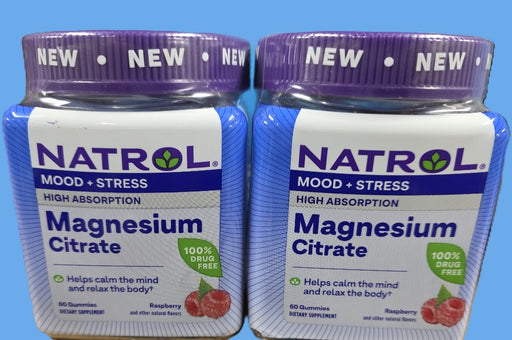 2 PACK!!! Natrol Mood+Stress Magnesium Citrate Gummies Raspberry,60 Ct EXP: 6/26