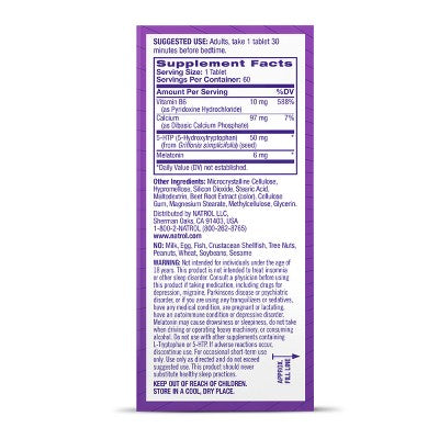 Natrol Advanced Sleep Melatonin + 5-HTP Time-Release Tablets are a calming sleep aid supplement that contains a triple-action formula to calm your ...