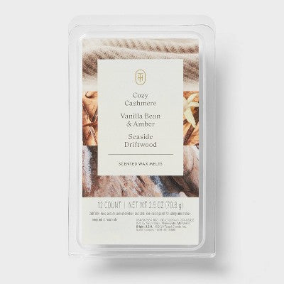 12ct Cozy Vanilla Amber Cashmere and Seaside Driftwood Wax Melts 2.5oz - Threshold
