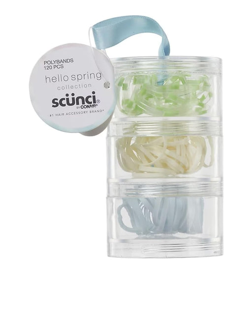 ScunciThis set of 120 polybands hair ties is ideal for creating little ponytails and braids. It includes 40 small rubber hair elastics in each of three c...