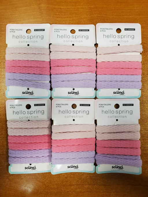 ScunciThese 6 textured hosiery Ponytailers hair ties are ideal for securing ponytails, braids, and buns without pulling. You'll receive two elastics in e...