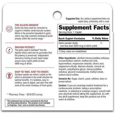 GarliqueGarlique Healthy Cholesterol Formula helps support cardiovascular health with 5,000 mcg of allicin, which may help maintain cholesterol levels alre...