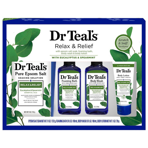 Dr Teal'sRejuvenate your body and mind with the essential oils and natural scents of Dr Teal’s Relax & Relief Gift Set with Eucalyptus & Spearmint. ...