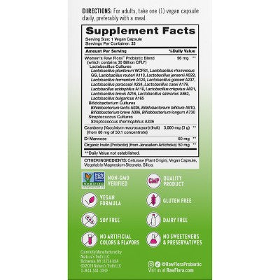 Nature's Truth Women's Care Raw Flora 30B Probiotic Capsules - 33ct