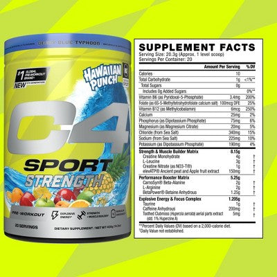 View full detailsCellucor C4 Sport Strength Pre-Workout - Hawaiian Punch Berry Blue Typhoon - 14.3oz/20 Servings