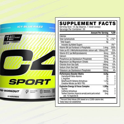 View full detailsCellucor C4 Sport Pre-Workout - Blue Razz - 8oz/20 Servings