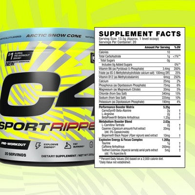 View full detailsCellucor C4 Sport Ripped Pre-Workout - Artic Snow Cone - 9.9oz/20ct