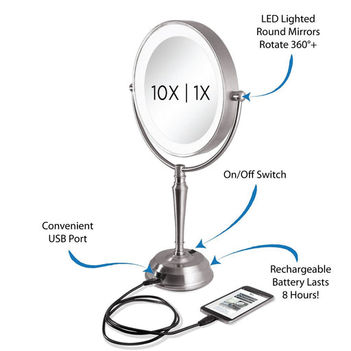 View full detailsZadro Next Generation LED Lighted Vanity Mirror with USB Port Satin Nickel - 10X/1X