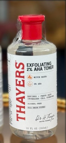 Thayers Natural RemediesThayers alcohol-free 2% AHA Toner is your one step skin prep for better looking bare skin. Used after cleansing, Thayers 2% AHA Toner exfoliates, s...