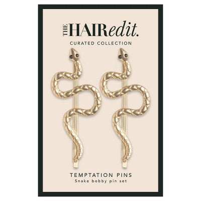 The Hair EditSlide in the Temptation Bobby Pins from The Hair Edit and embrace your inner temptress. Wear these gold snake hair pins one at a time or both toget...