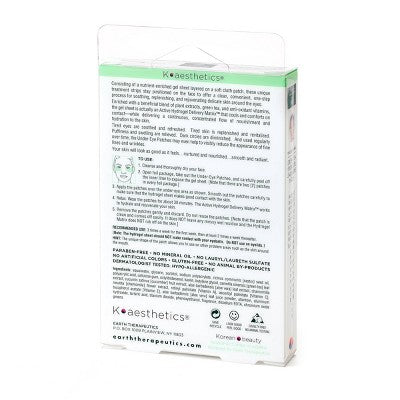 Earth TherapeuticsNutrient-enriched Active Hydrogel Delivery Matrix™ gel sheet layered on a soft cloth patch, our unique Green Tea Hydrogel Under-Eye Patch treatment...