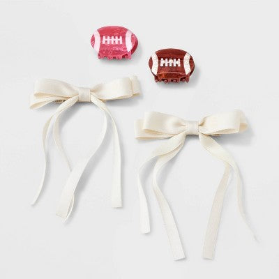 View full detailsGirls' 4pk Football and Satin Bow Claw Clip Set - art class