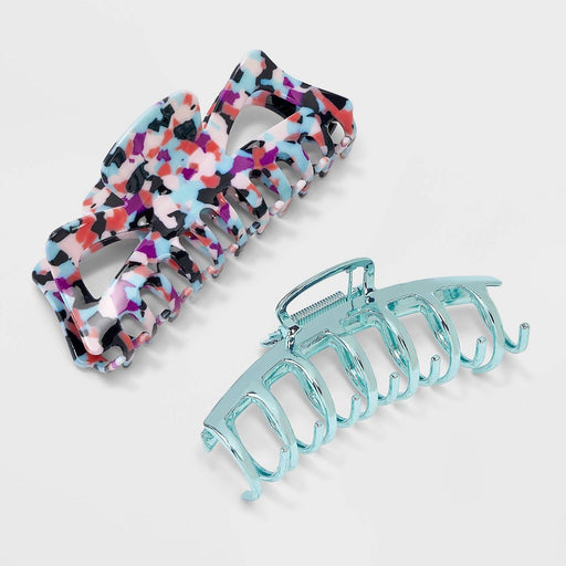 View full detailsGirls' 2pk Jumbo Rainbow Tort & Chrome Claw Clip Set - art class