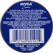 Everyone’s skin needs a little extra care, and NIVEA Creme Body, Face and Hand Moisturizing Cream provides that and more. Enriched with Provitamin B5, this rich, creamy formula intensively moisturizes, nourishes and protects the skin from that rough, dry feel with every use. NIVEA Creme is perfect to use as a body creme, a hand creme and a daily face moisturizer. For a little extra care, apply NIVEA moisturizing cream to the roughest areas, such as knees, feet and elbows. This dry skin moisturizer is great for intensive moisturizing skincare needs. To use, smooth over skin and apply daily for best results. NIVEA is proud to be one of the leading companies in the field of skin care products, with more than 130 years of expertise.