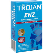 TROJAN ENZ Armor Spermicidal Condoms have a classic design that works to protect against unintended pregnancies with the added safeguard of spermicide. Nonoxynol-9 spermicide works with the premium quality latex to give you extra protection against unintended pregnancy. For extra safety, there is a special reservoir end. They’re also electronically tested to help ensure reliability and help protect you and your partner from sexually transmitted infections (STIs) while you play. Includes one 12 count box of TROJAN ENZ Armor Spermicidal Condoms. TROJAN Brand condoms are America's #1 condom, trusted for over 100 years. The TROJAN Brand promotes a safe, healthy, and fun sex life. From condoms to vibrators to lubricants, TROJAN Brand is dedicated to delivering innovative, high-quality products that offer pleasure and protection. CAUTION: Spermicidal lubricants are for extra protection against pregnancy. Spermicidal lubricants are not for rectal use or more-than-once-a-day vaginal use.