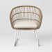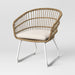 Add an easy and elegant boho look to your patio dining table, sun room or other location where you relax or entertain with this Southport 2pk of Patio Dining Chairs from Threshold™. These charming wicker patio chairs feature a rust-resistant steel frame base, topped with weather-resistant woven wicker for a breezy bohemian look you'll love. Tall, curved backs and soft seat cushions make for a comfortable feel while you dine or chat with guests, and the seat cushions secure to the frames with ties so they stay put when sitting while offering easy removal when needed.