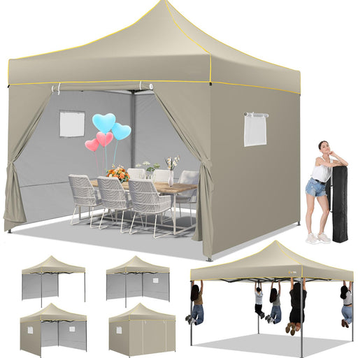 COBIZI 10X10 Pop Up Canopy Tent, Easy Setup Canopy With Sidewalls Waterproof & UPF 50+, Heavy Duty Commercial Instant Craft Fair Tent For Party, Event, Vendor, Farmer Market(Khaki) (LOCAL PICKUP ONLY)