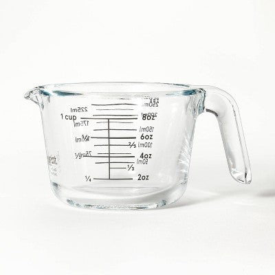 View full details1 Cup Glass Measuring Cup Clear - Figmint: Borosilicate, Microwave & Dishwasher Safe, 8oz Capacity