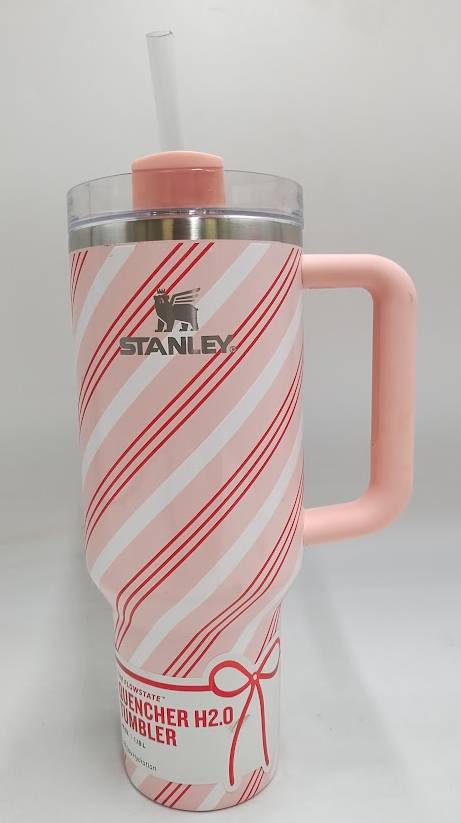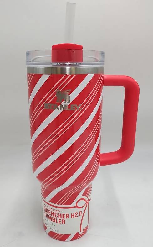 View full detailsStanley 40 oz H2.0 FlowState Quencher Tumbler Candy Cane Twist READ DESCRIPTION
