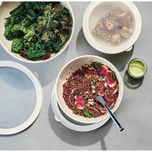 6pc (set of 3) Plastic Mixing Bowl Set with Lids Cream - Figmint