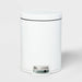 This little 5L Round Color Step Trash Can from Brightroom™ is a convenient way to complete any kitchen, office area or home workspace. It fits over a gallon of waste, and its quiet-closing lid lets you toss all the trash you need without disturbing co-workers, roommates or family members. This small stainless steel bin fits neatly in a small cabinet or under a desk. It's built with a pedal-operated lid so you can quickly and easily throw out any garbage, and features a removable inner liner for easy emptying. The fingerprint-resistant finish gives it a clean look that coordinates easily with a variety of room designs and color palettes.