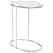 Included Components: Bowery Hill End Table Coffee Accent Table, Oval, C Shape Slides Under Couch, Contemporary, Indoor In Glass Top And Metal, Chrome