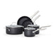 Pour spouts, measure marks, and straining lids empower confidence in the kitchen, while lasting nonstick technology and stainless steel handles that stay cool on the stovetop make this set ideal for everything from scrambling eggs, warming soups, simmering stews, and more.