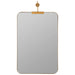 23 3/4" wide x 42" high including the top bracket x 1" deep. Hang weight is 23 lbs., Glass only section is 23 1/2" wide x 35 3/4" high., Contemporary rectangular wall mirror from the Frida collection by Cooper Classics., Vertical installation only. D-rings hangers on the back., Shiny gold finish over metal frame and hardware construction. MDF wood backing. Non-beveled glass.