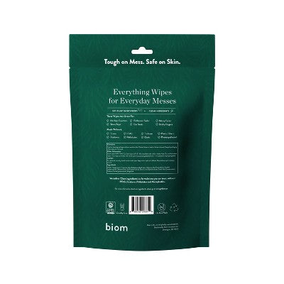 BiomMess happens. Biom wipes make it disappear - without the junk. Safe on skin, tough on counters, and 100% free from microplastics or harsh chemicals...