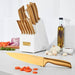 Designed for distinction with an elegant gold tone finish, this premium cutlery set is superbly crafted with stainless steel blades and ergonomically contoured handles. Equipped with a knife for every prep task, the set is displayed in a sturdy and stylish white lacquer block. From home cooks to world-class chefs, Cuisinart premium cutlery is designed for cooks in every kitchen. The Classic Collection features a large selection of stainless steel knives and shears. Crafted with sleek, modern lines, precision blades, durable bolsters, and comfortable, contoured handles, this superior cutlery set gives you the versatility to take on any cutting task like a pro.