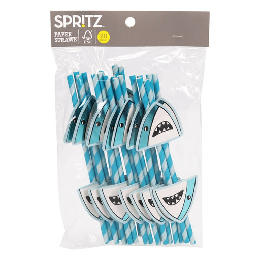 Take a sip of your fin-tastic drink in style with the 20-Count Shark Paper Straws from Spritz™. Featuring a blue and white candy stripe pattern, th...