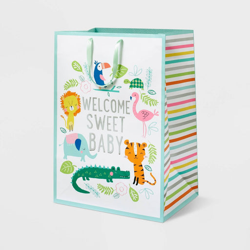 SpritzGive your baby shower or new baby gift in wild style with the Welcome Sweet Baby Jungle Colossal Cub Gift Bag from Spritz™. This large gift bag pop...