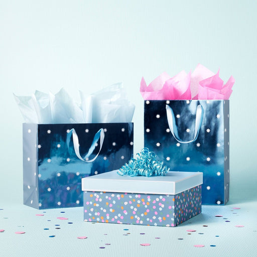 SpritzPresent your gift in this Large Blue Foil with White Star Dot Cub Bag - Spritz™ to make a lasting impression. It has white stars on blue foil and r...