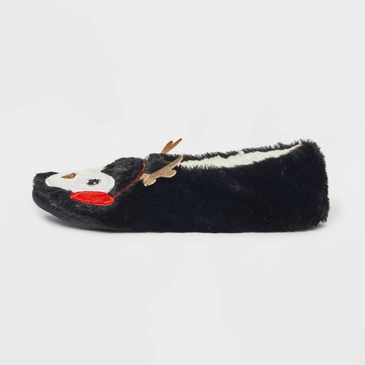 View full detailsWomen's Penguin Faux Fur Pull-On Slipper Socks with Grippers - Wondershop Black/White M/L