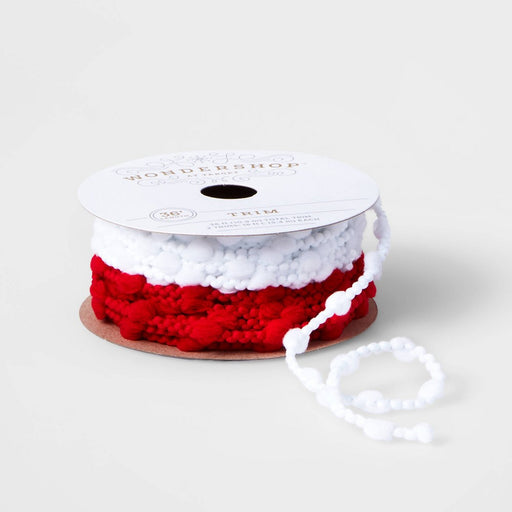 View full details2ct Pom Cord Fabric Ribbon Red/White 36ft - Wondershop